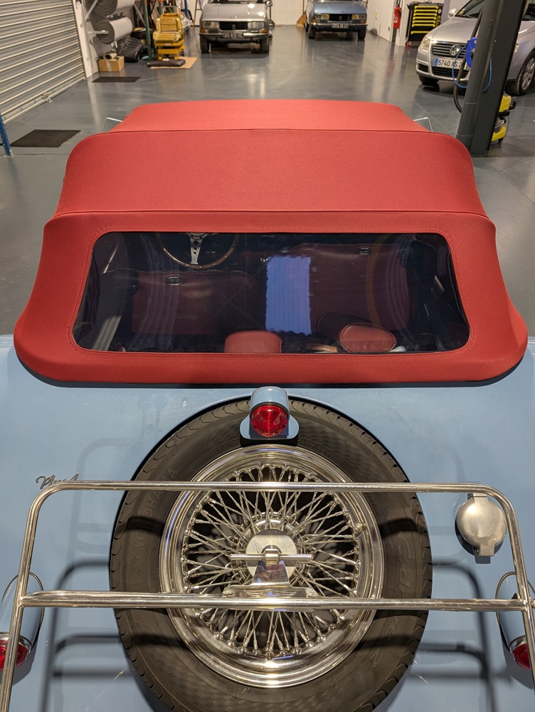 Confection sur mesure d'une capote en Alpaga Bordeaux pour une Morgane Plus 4 par RC Sellerie